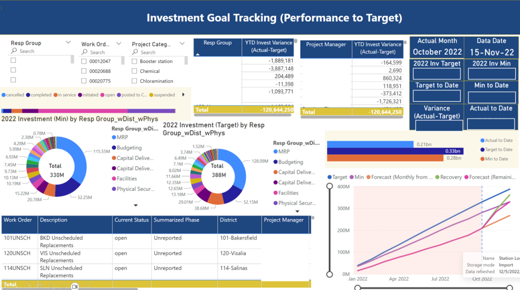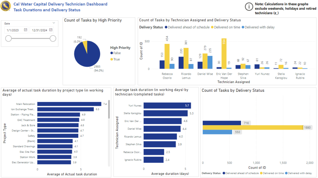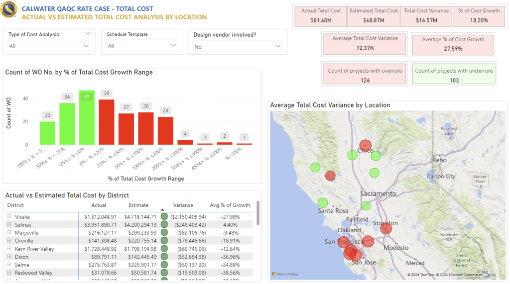 CALWATER – CALIFORIA, ESTADOS UNIDOS Este dashboard fue desarrollado para aprovechar la data histórica de cronogramas de proyectos en MS