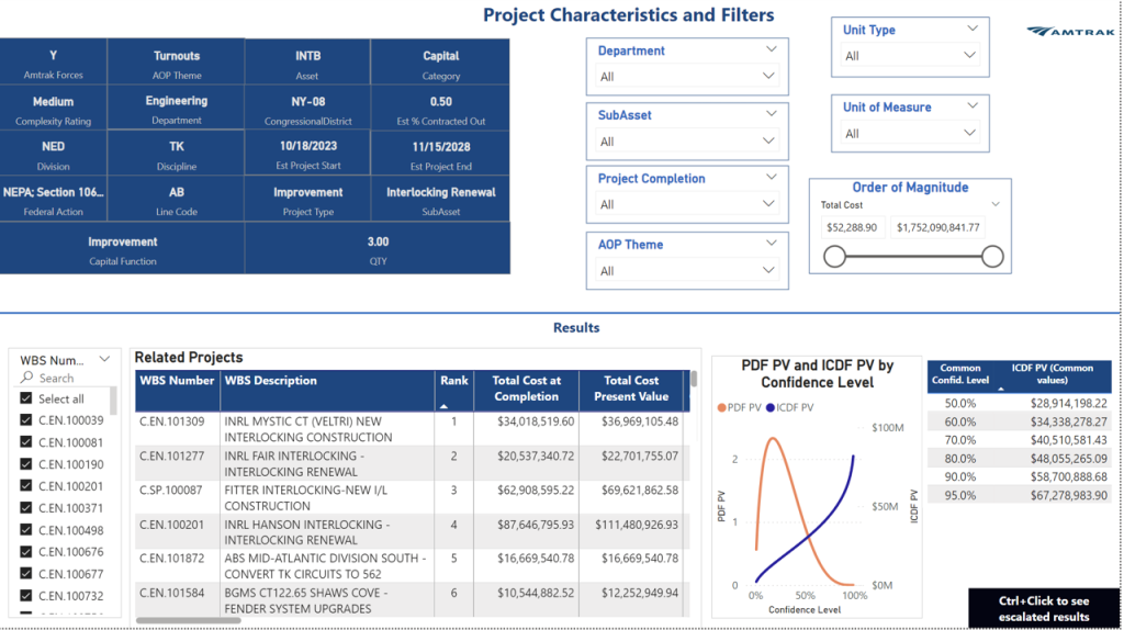 FISH AND WILDLIFE SERVICE Y AMTRAK – ESTADOS UNIDOS Se desarrolló una herramienta en Power BI para la estimación de